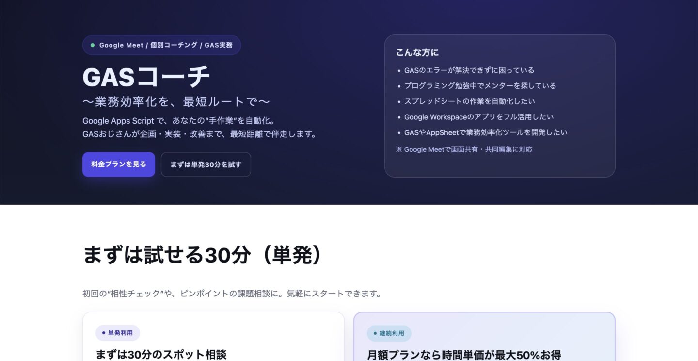 そんなときのために、月額制の「GASコーチ」というサービスもご用意しています。
